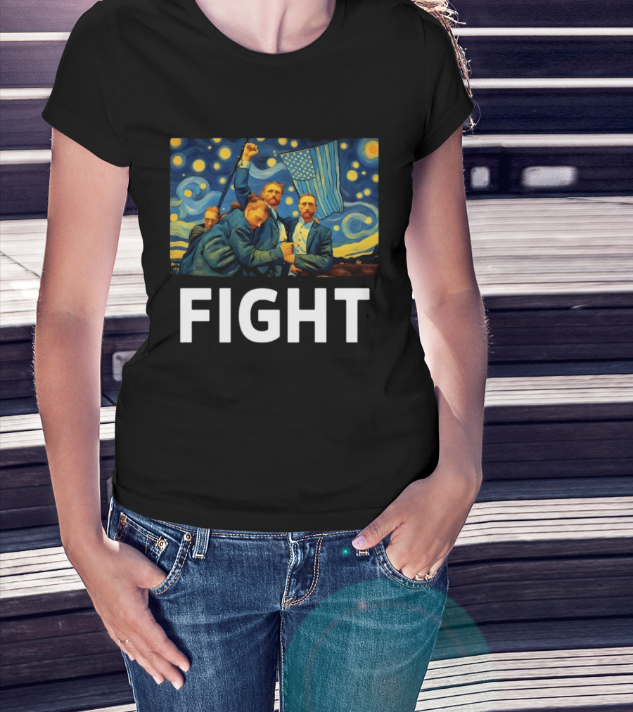 Fight Van Gogh Starry Night American Flag Fist Raised T-Shirt