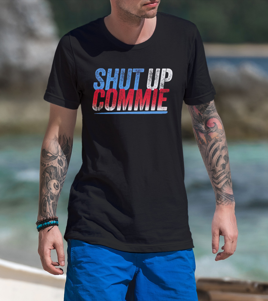 SHUT UP COMMIE Red White Blue Text T-Shirt