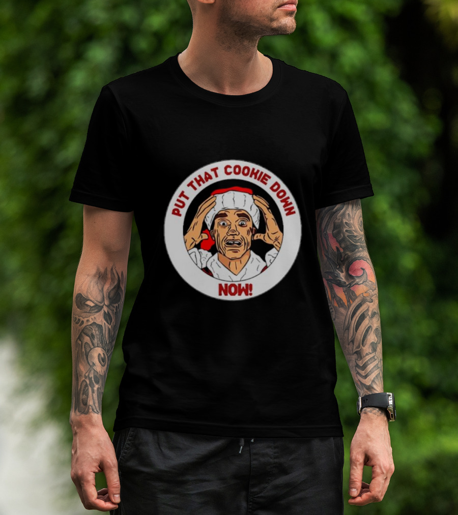 Arnold Schwarzenegger Santa Put That Cookie Down Now Iconic Phrase T-Shirt