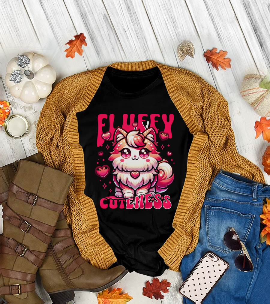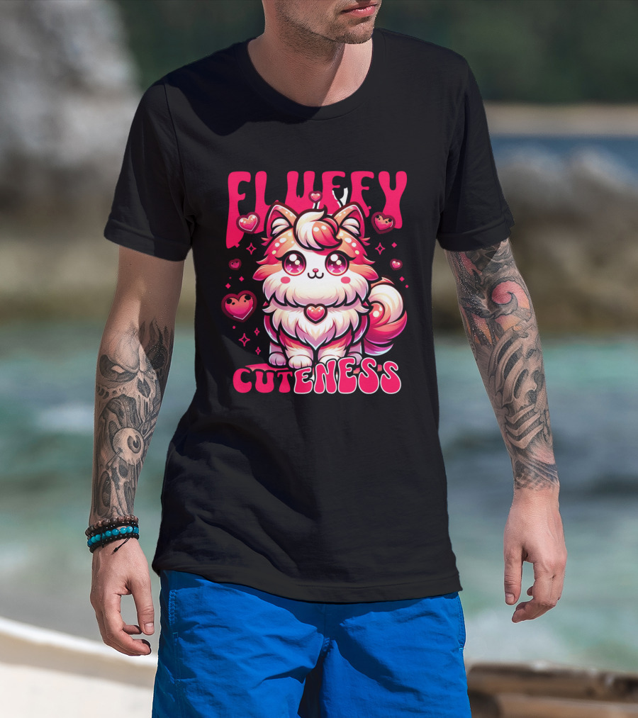 The FLUFFY CUTENESS Heart-Eyed Kawaii Creature Surrounded by Little Hearts T-shirt is designed for everyday wear and a consistent fit. Fabric is pre-shrunk ring-spun cotton with durable stitching. See the size chart below for exact measurements.