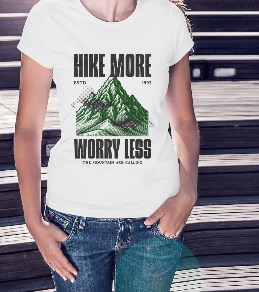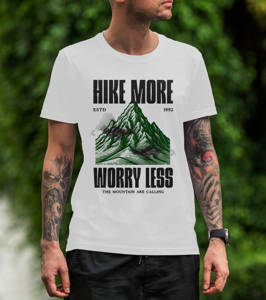 The HIKE MORE WORRY LESS ESTD 1992 THE MOUNTAIN ARE CALLING T-shirt is designed for everyday wear and a consistent fit. Fabric is pre-shrunk ring-spun cotton with durable stitching. See the size chart below for exact measurements.