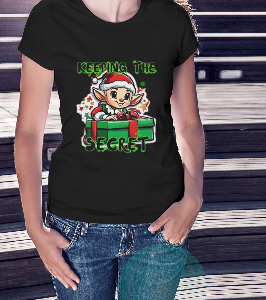 Keeping The Secret Christmas Elf With Present T-Shirt
