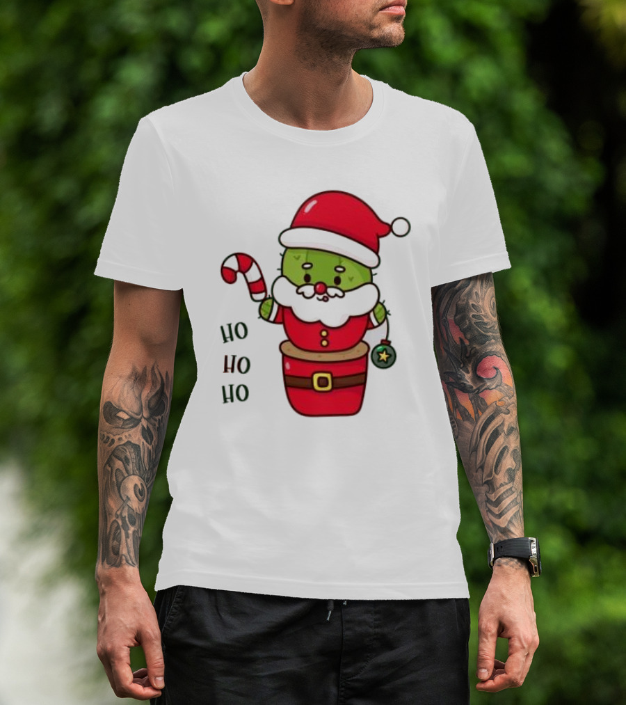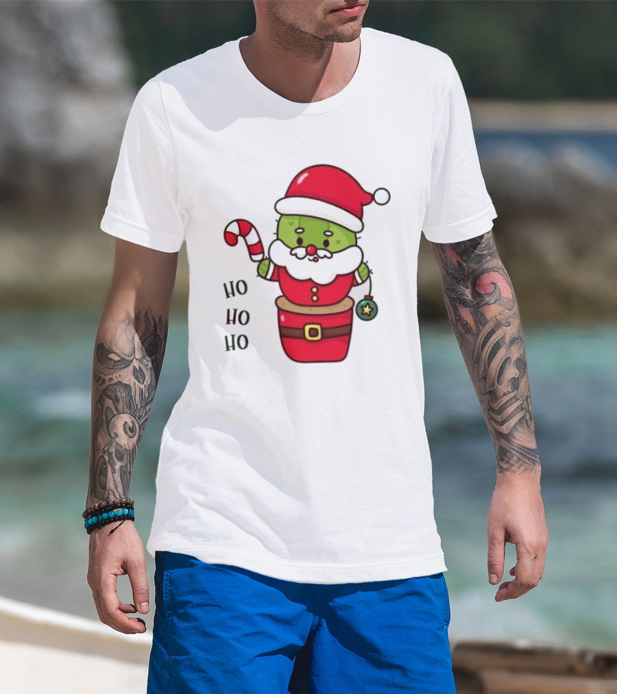 Santa Claus Ho Ho Ho Christmas Cactus Santa Suit Candy Cane T-Shirt