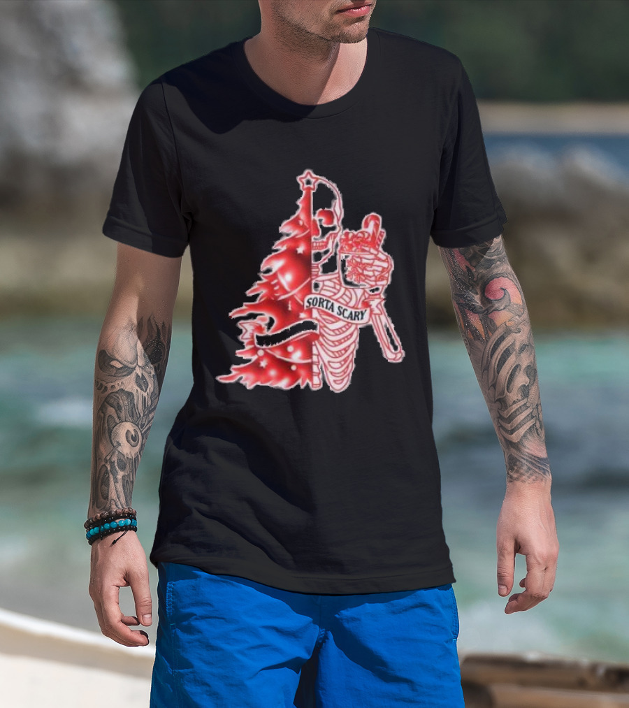 Skeleton Sorta Merry Sorta Scary Christmas Tree Splittinwigz T-Shirt