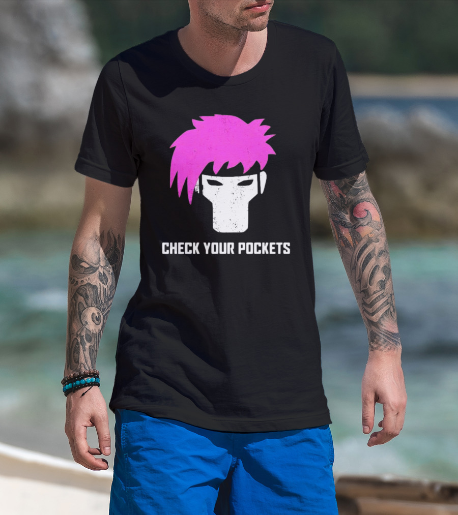 Check Your Pockets Pink Hair Masked Face T-Shirt
