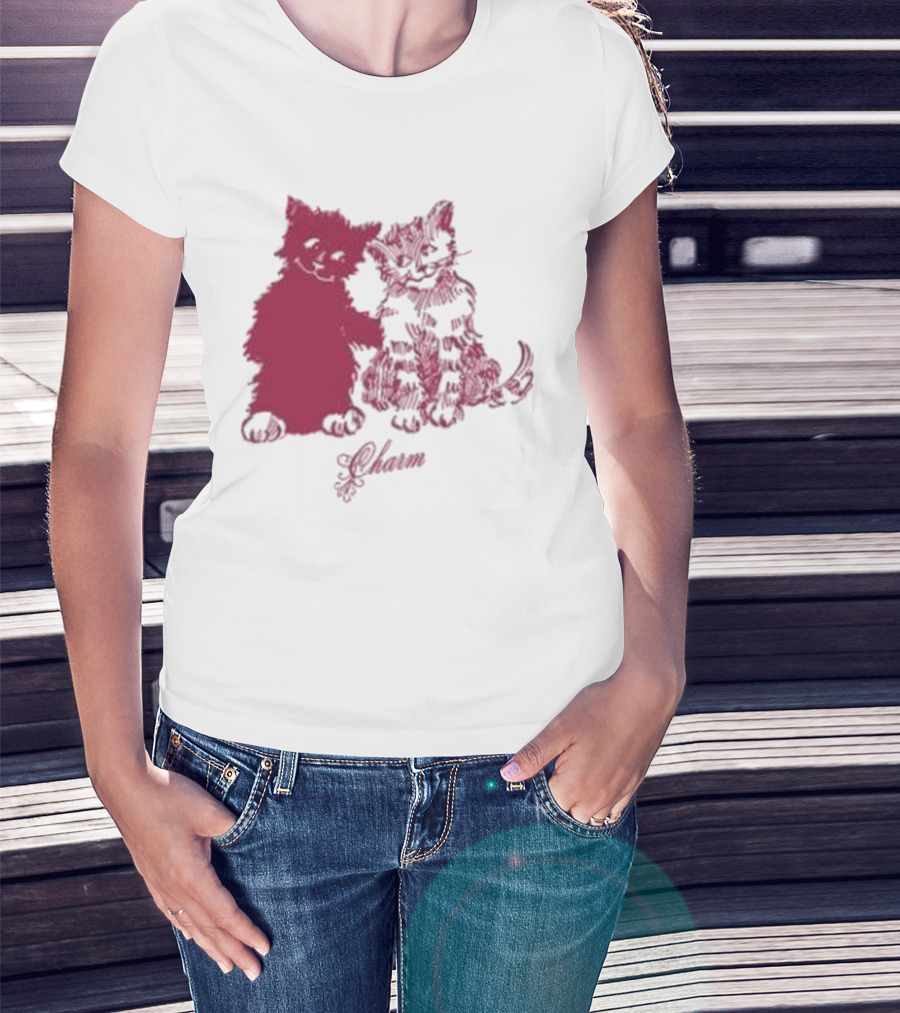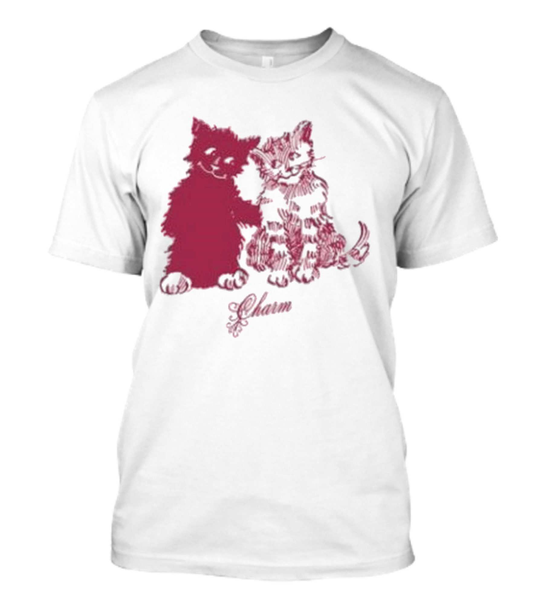 The Clairo Charm Pink Cat Friends with Yawn Text T-shirt is designed for everyday wear and a consistent fit. Fabric is pre-shrunk ring-spun cotton with durable stitching. See the size chart below for exact measurements.