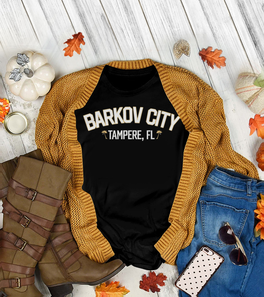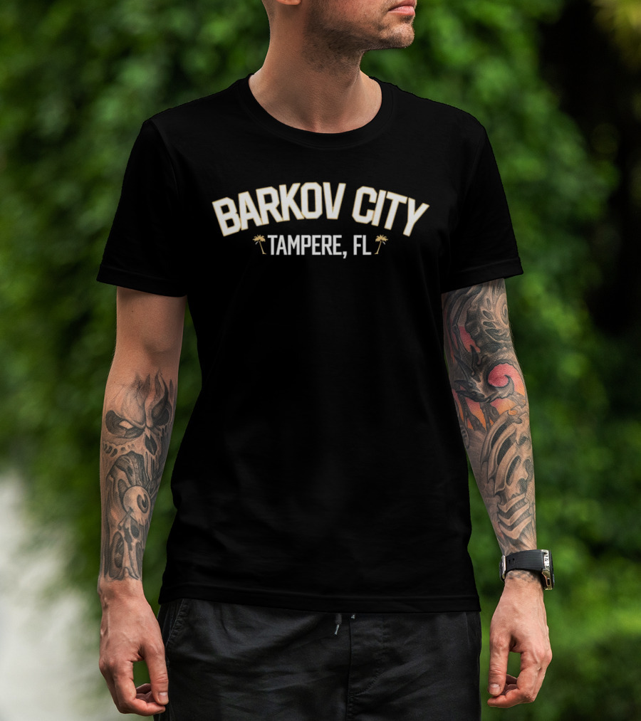 The Barkov City Tampere FL Palm Trees T-shirt is designed for everyday wear and a consistent fit. Fabric is pre-shrunk ring-spun cotton with durable stitching. See the size chart below for exact measurements.
