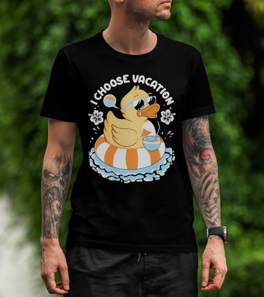 I Choose Vacation Duck On Beach With Sunglasses And Tropical Drink T-Shirt