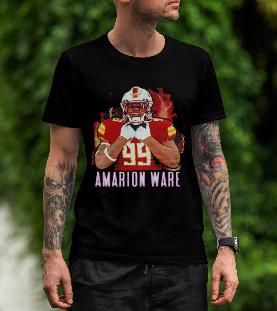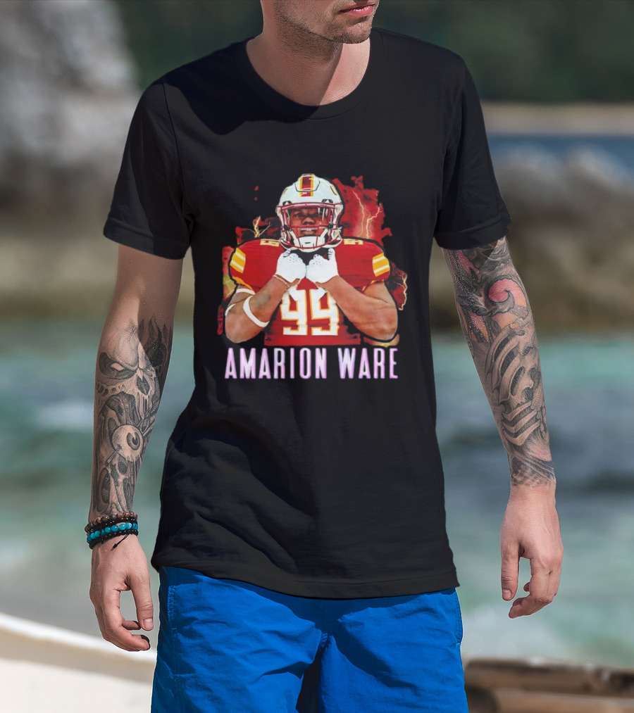 Amarion Ware ULM Warhawks 99 Football Player Lightning Background T-Shirt