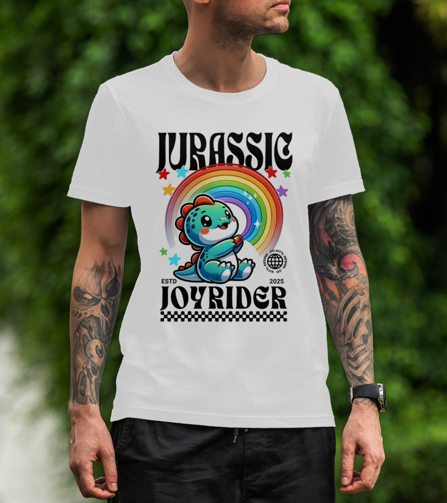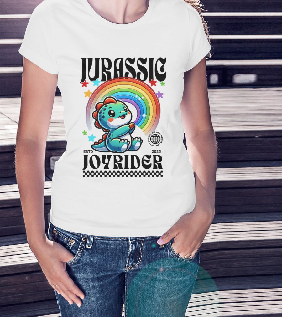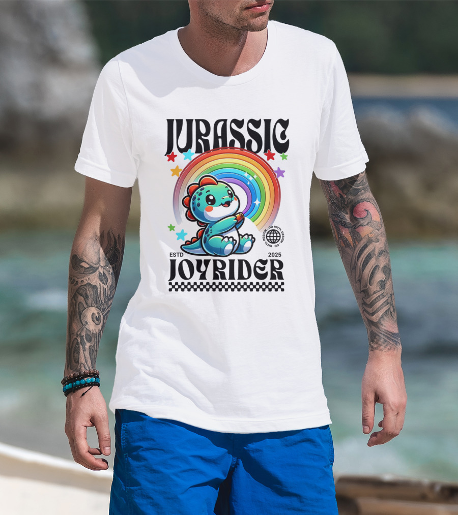 JURASSIC JOYRIDER ESTD 2025 Rainbow Star Dino Club T-Shirt
