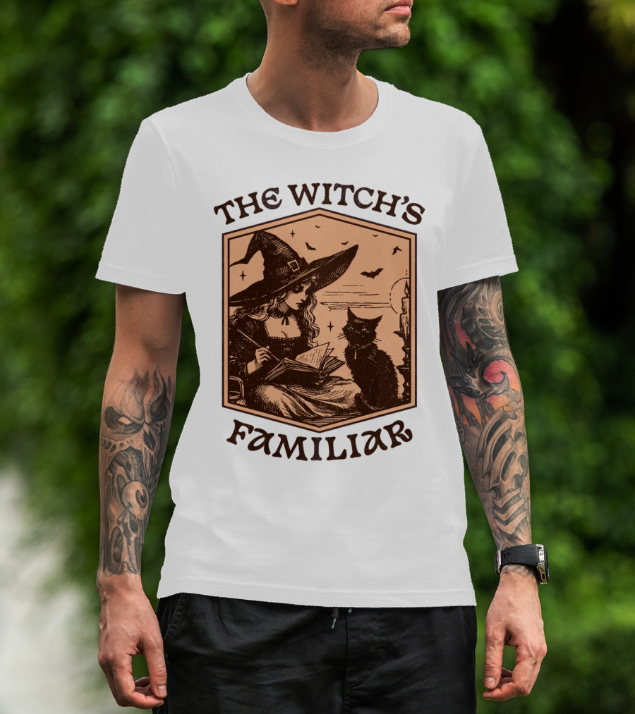 The Witch's Familiar Halloween Vintage Witch And Cat T-Shirt