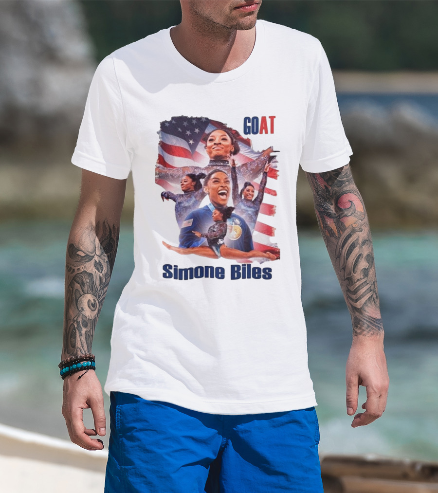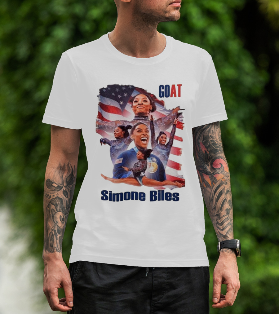 The Simone Biles GOAT American Flag T-shirt is designed for everyday wear and a consistent fit. Fabric is pre-shrunk ring-spun cotton with durable stitching. See the size chart below for exact measurements.