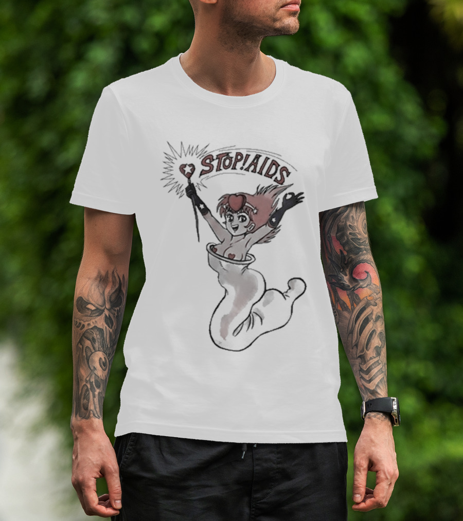 STOP AIDS Sailor Moon Wand Heart T-Shirt