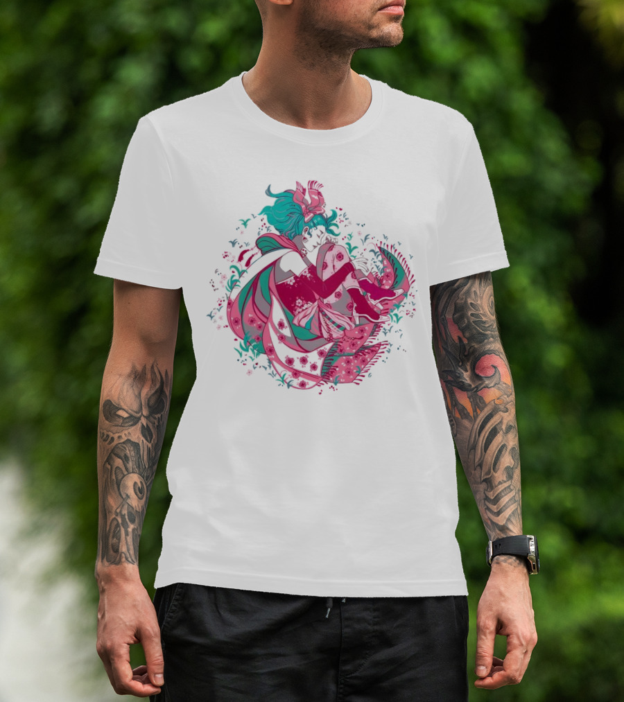 The The Floating Garden Lovers in Bloom with Vibrant Floral Embrace T-shirt is designed for everyday wear and a consistent fit. Fabric is pre-shrunk ring-spun cotton with durable stitching. See the size chart below for exact measurements.