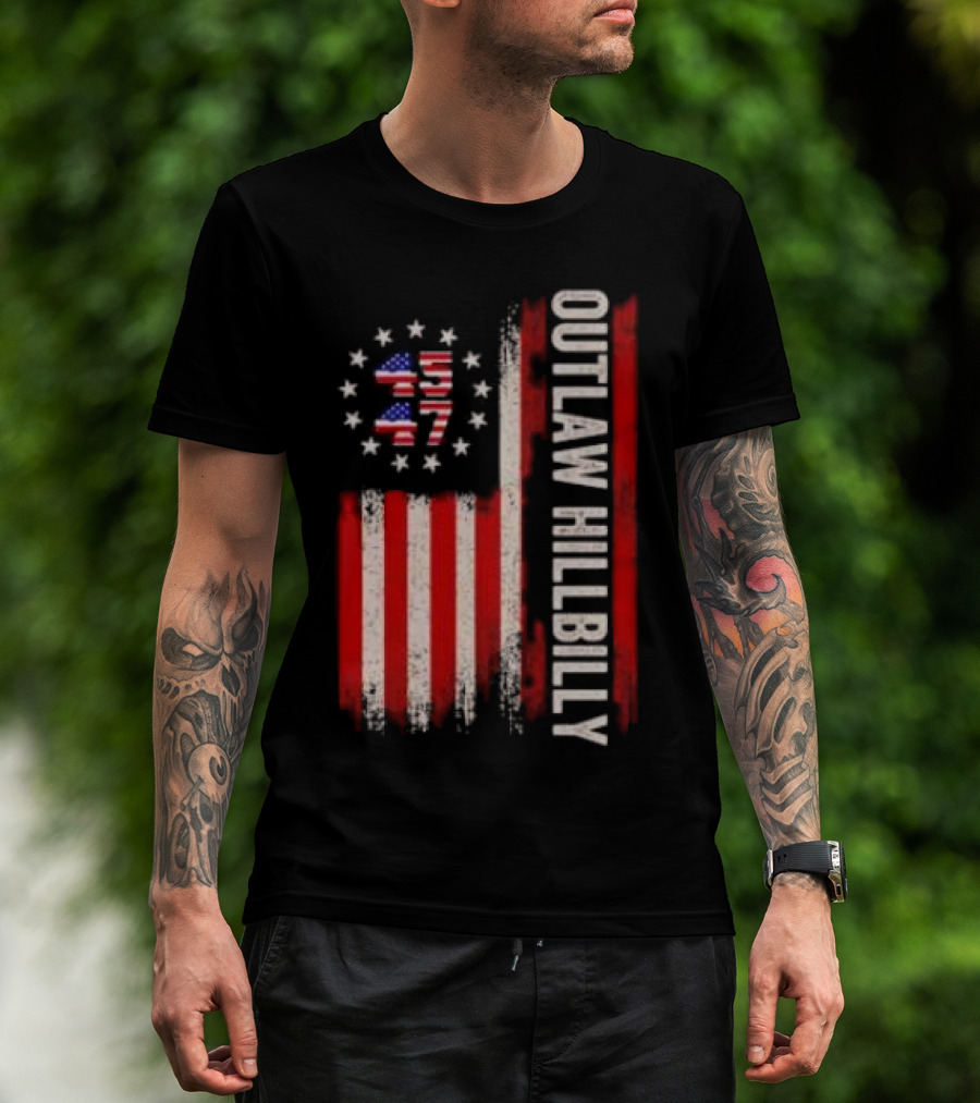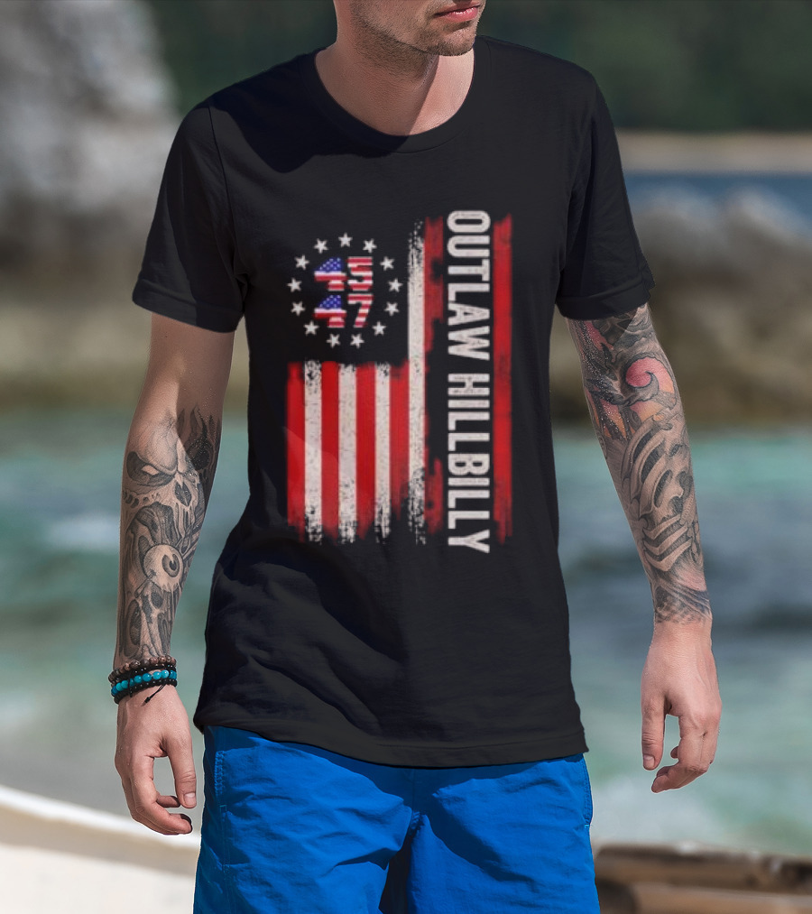 Outlaw Hillbilly American Flag 1776 Stars Stripes T-Shirt