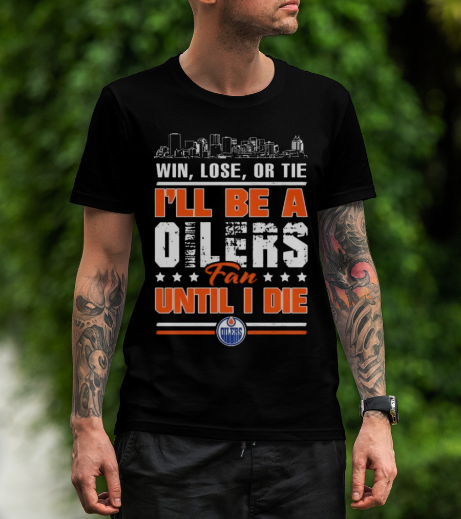 Win Lose Or Tie I'll Be A Oilers Fan Until I Die Edmonton Oilers Skyline Elements T-Shirt