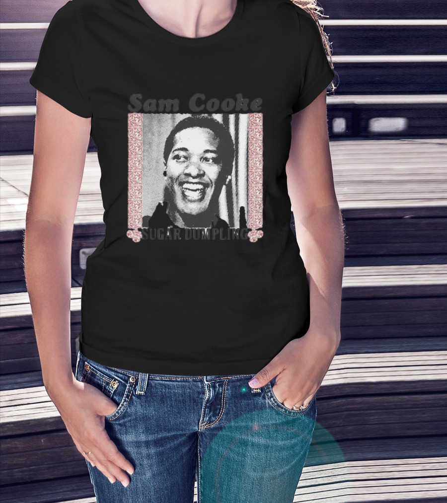 The Sam Cooke Sugar Dumpling Smiling Portrait T-shirt is designed for everyday wear and a consistent fit. Fabric is pre-shrunk ring-spun cotton with durable stitching. See the size chart below for exact measurements.