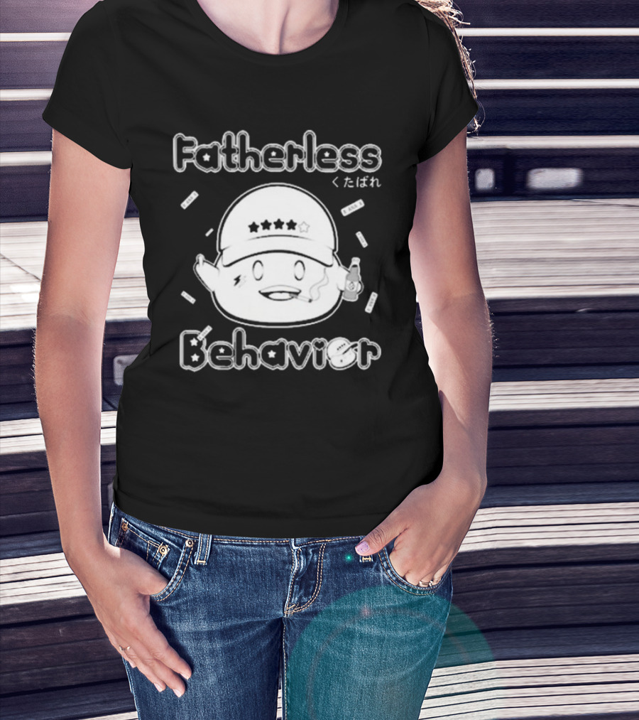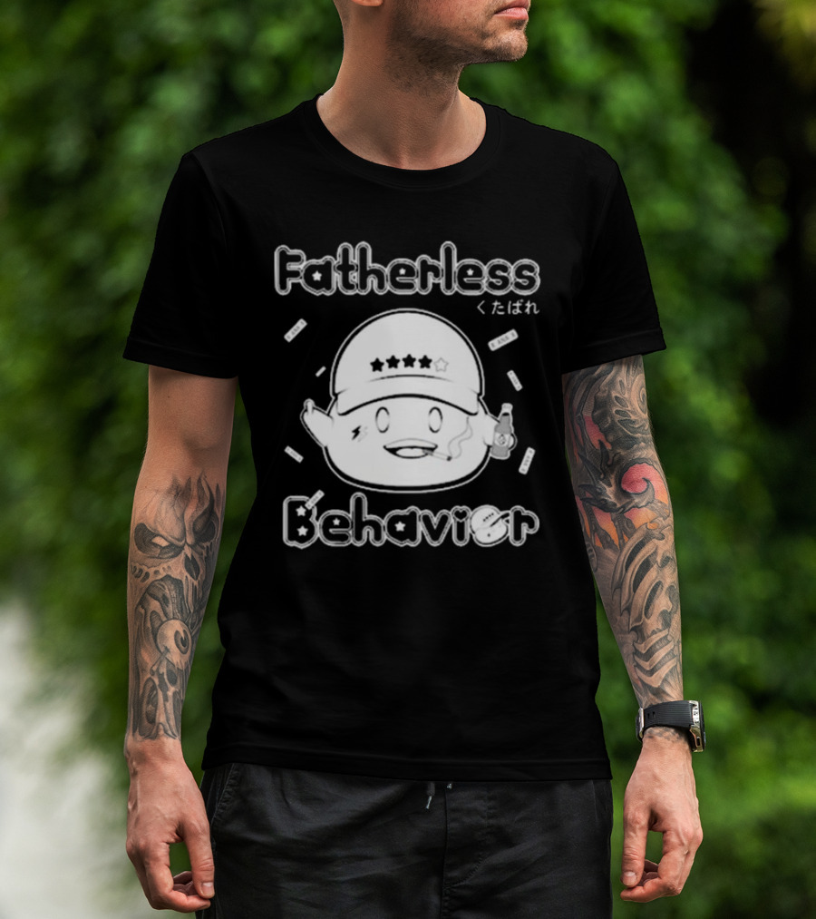 Fatherless Behavior Cute Character Holding Drink With Japanese Text くたばれ T-Shirt