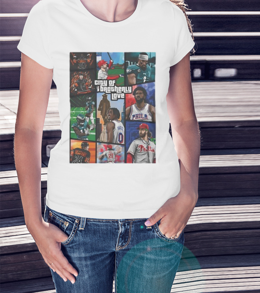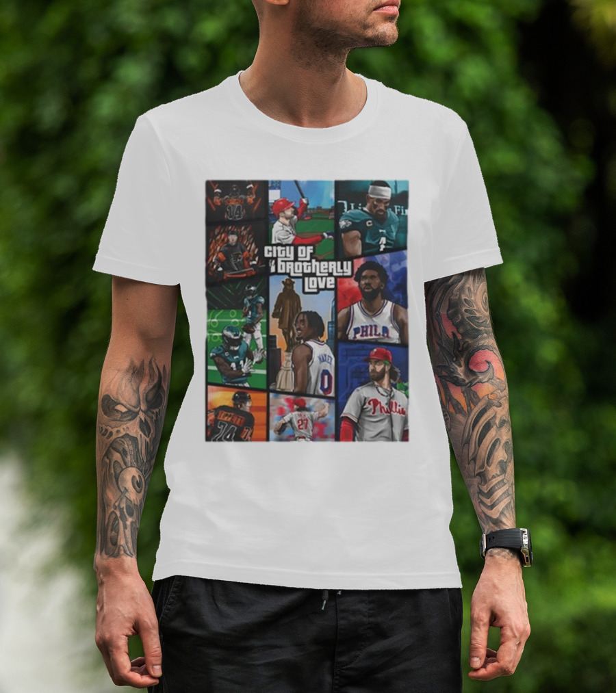 Saramart Gta X Philly Eagles Sixers Phillies City Of Brotherly Love T-Shirt