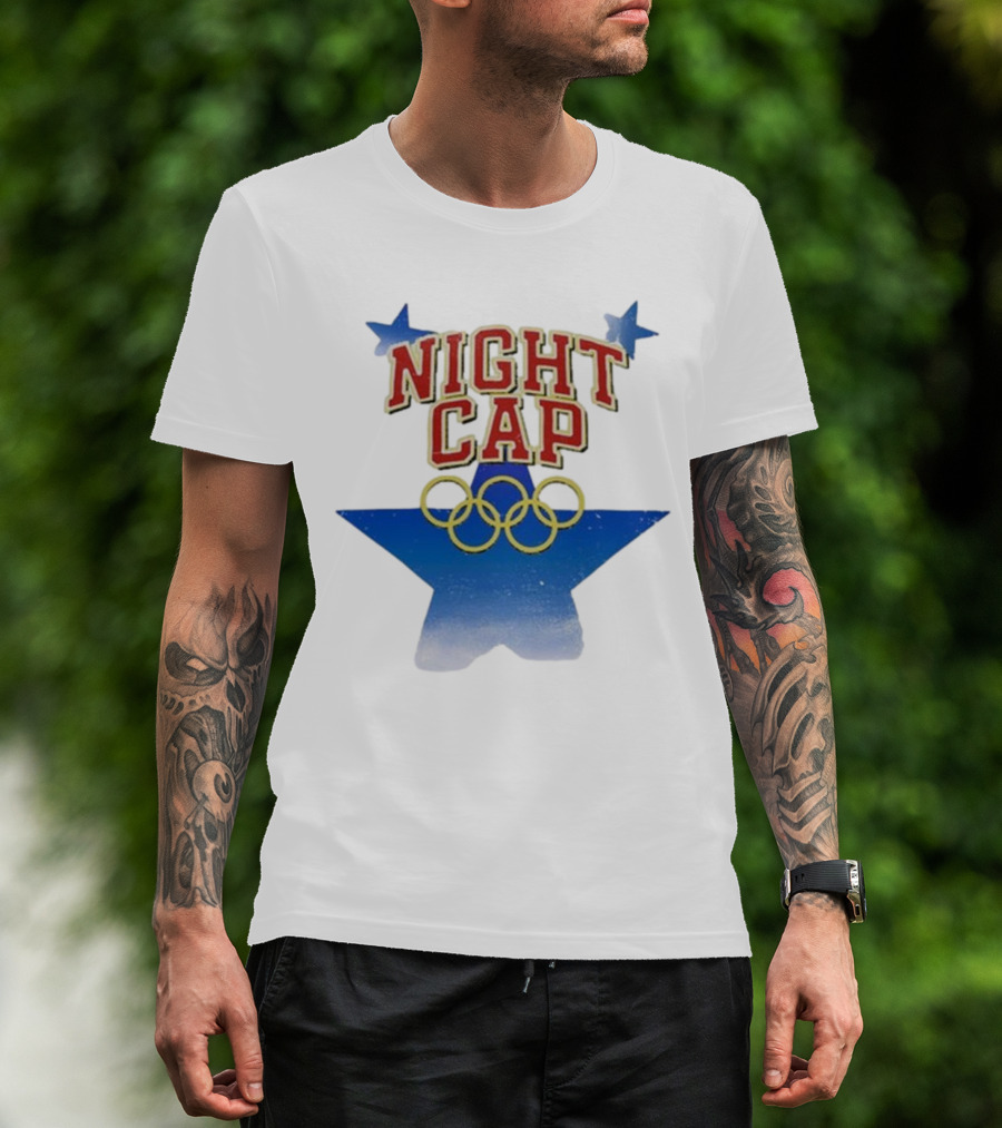 The Night Cap Olympics Star Rings T-shirt is designed for everyday wear and a consistent fit. Fabric is pre-shrunk ring-spun cotton with durable stitching. See the size chart below for exact measurements.