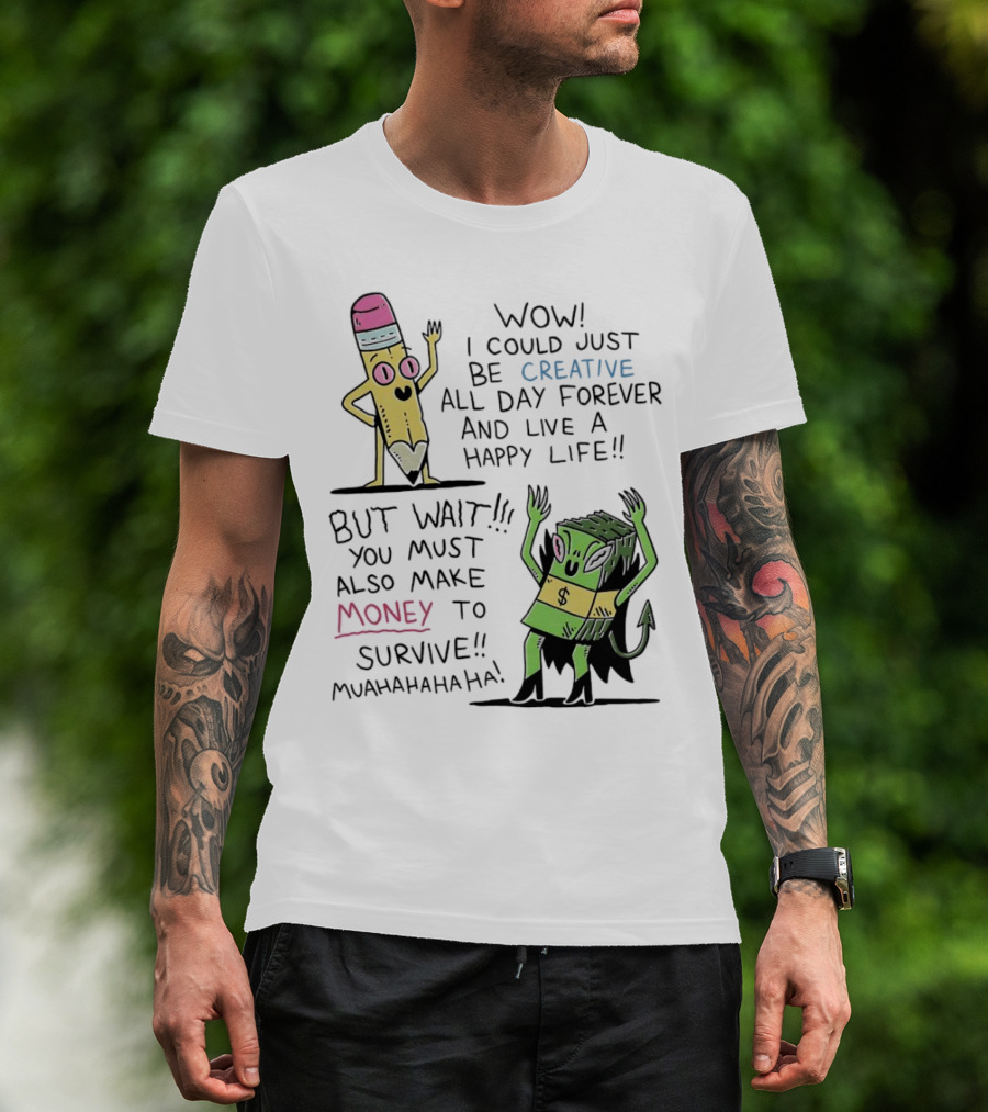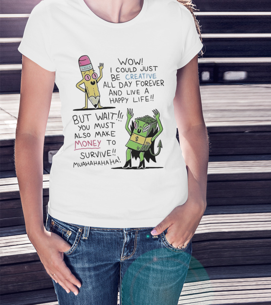 Wow I Could Just Be Creative All Day Forever And Live A Happy Life But Wait You Must Also Make Money To Survive Muahahahaha T-Shirt