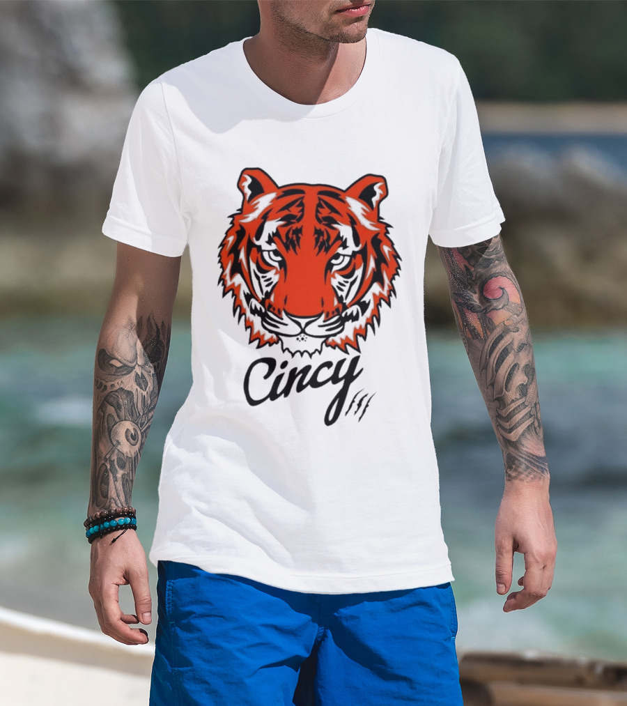 The Cincy The Tiger Head By Ted Karras T-shirt is designed for everyday wear and a consistent fit. Fabric is pre-shrunk ring-spun cotton with durable stitching. See the size chart below for exact measurements.