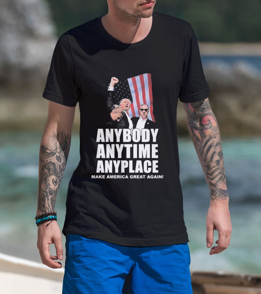Anybody Anytime Anyplace Make America Great Again Flag And Figures T-Shirt
