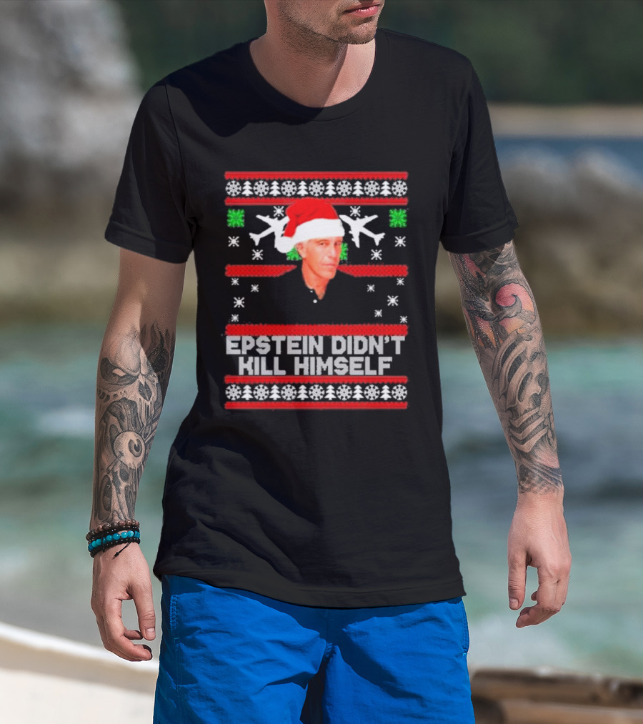 Epstein Didn't Kill Himself Santa Hat Airplane Ugly Christmas T-Shirt