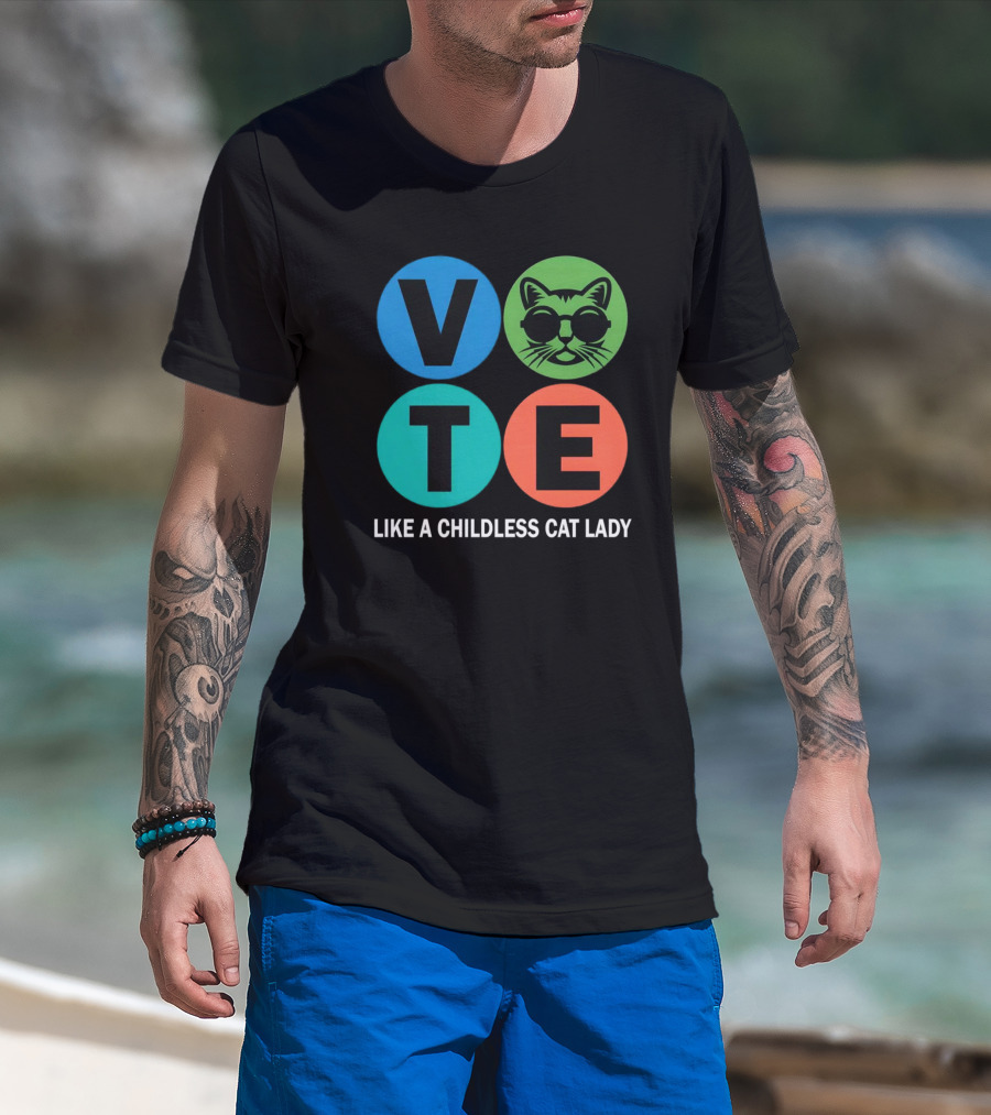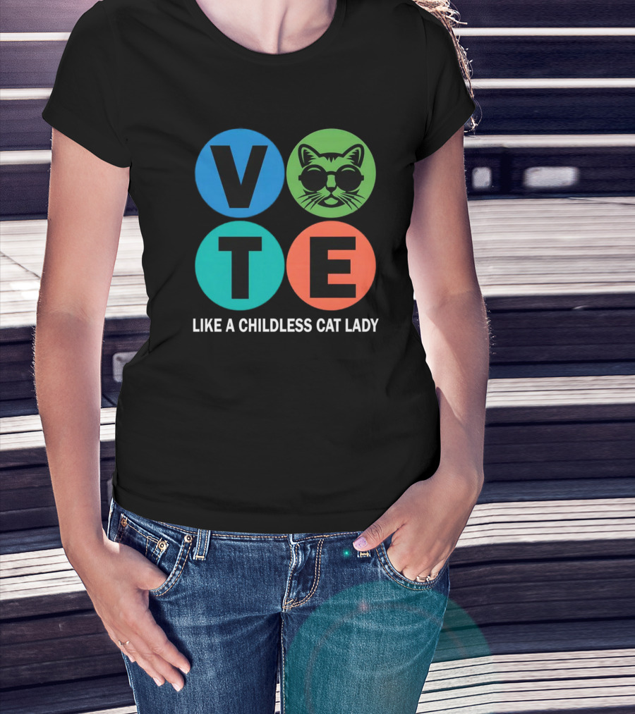Vote Like A Childless Cat Lady Retro Circle Cat Face T-Shirt