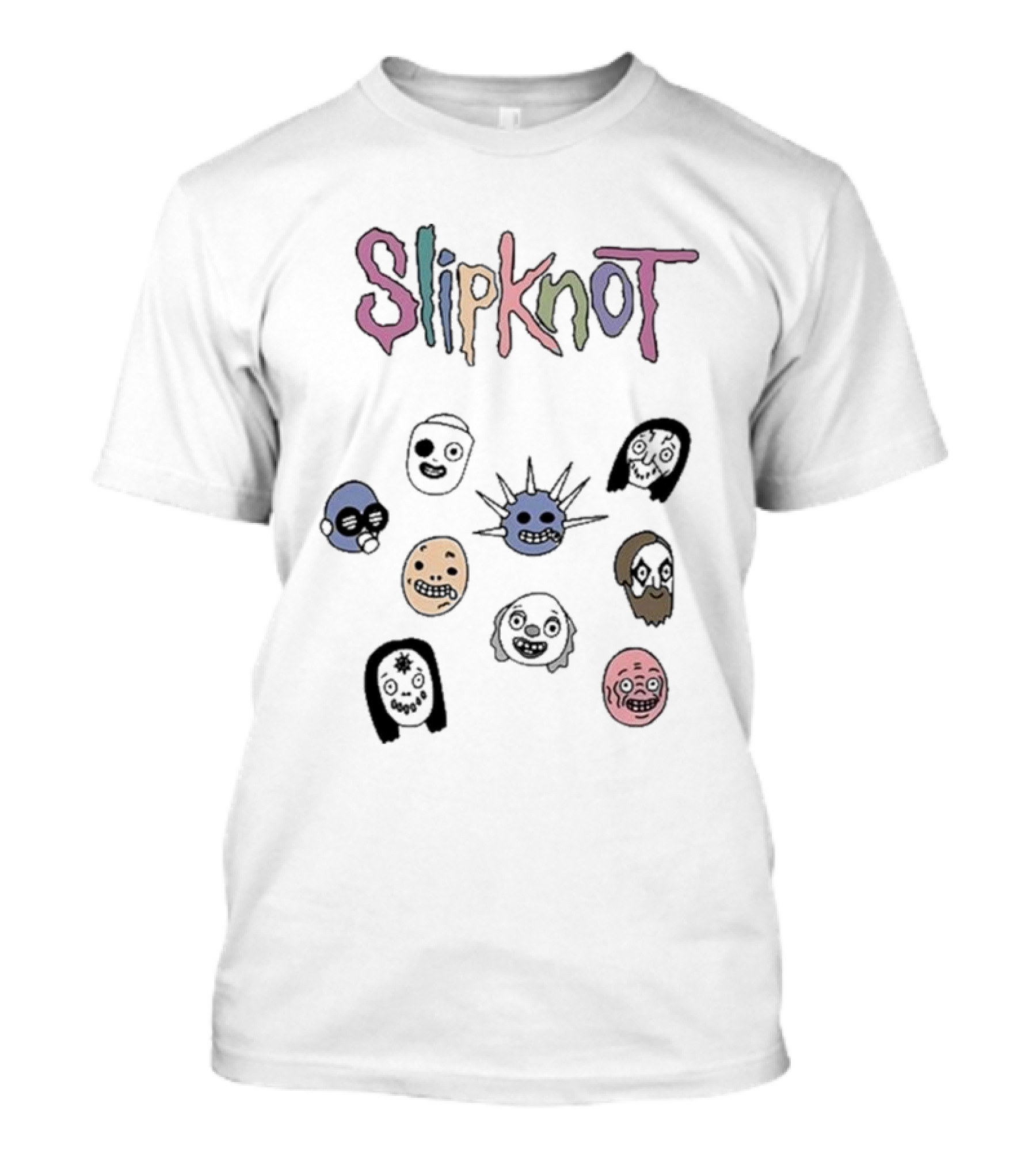The Slipknot Colorful Text and Mask Faces T-shirt is designed for everyday wear and a consistent fit. Fabric is pre-shrunk ring-spun cotton with durable stitching. See the size chart below for exact measurements.