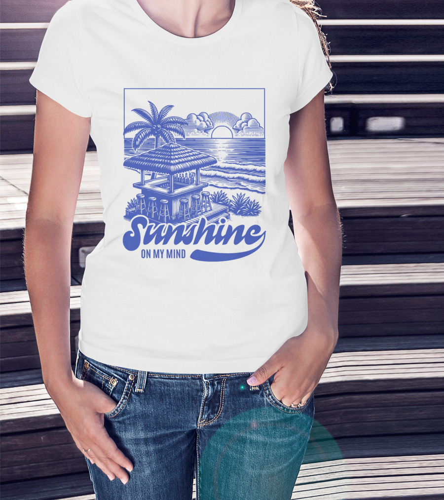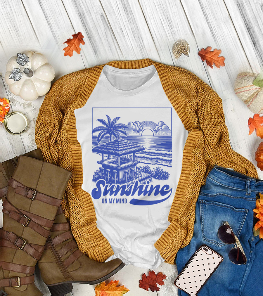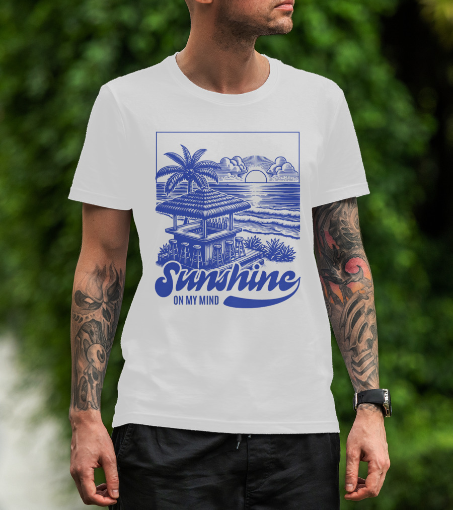 The Sunshine On My Mind Vintage Beach Hut and Sunset Scene T-shirt is designed for everyday wear and a consistent fit. Fabric is pre-shrunk ring-spun cotton with durable stitching. See the size chart below for exact measurements.