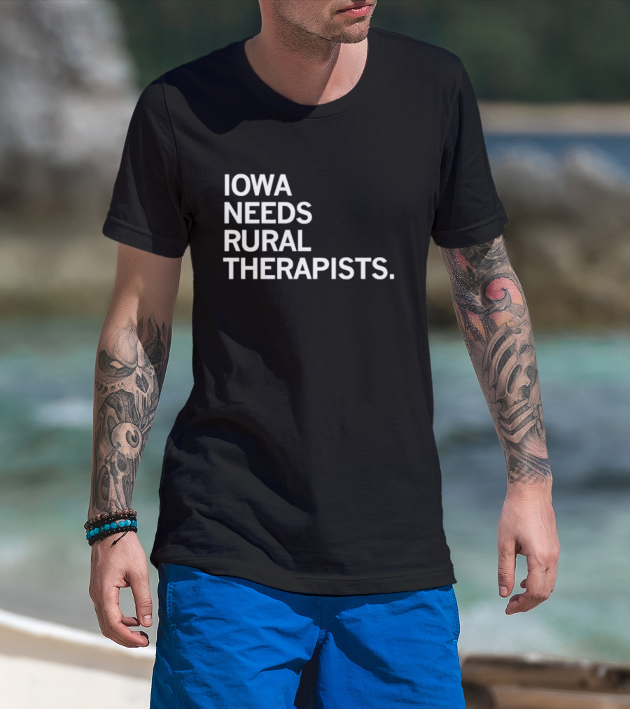 The Iowa Needs Rural Therapists T-shirt is designed for everyday wear and a consistent fit. Fabric is pre-shrunk ring-spun cotton with durable stitching. See the size chart below for exact measurements.