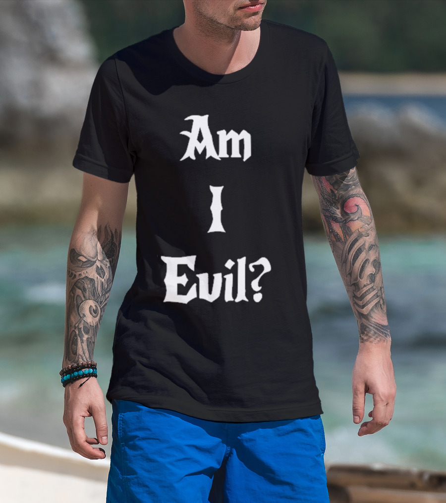 James B. Jones Am I Evil Gothic Text T-Shirt