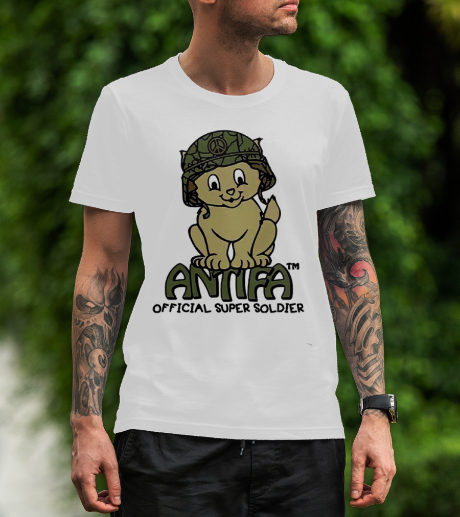 Antifa Super Soldier Peace Helmet Kitten T-Shirt