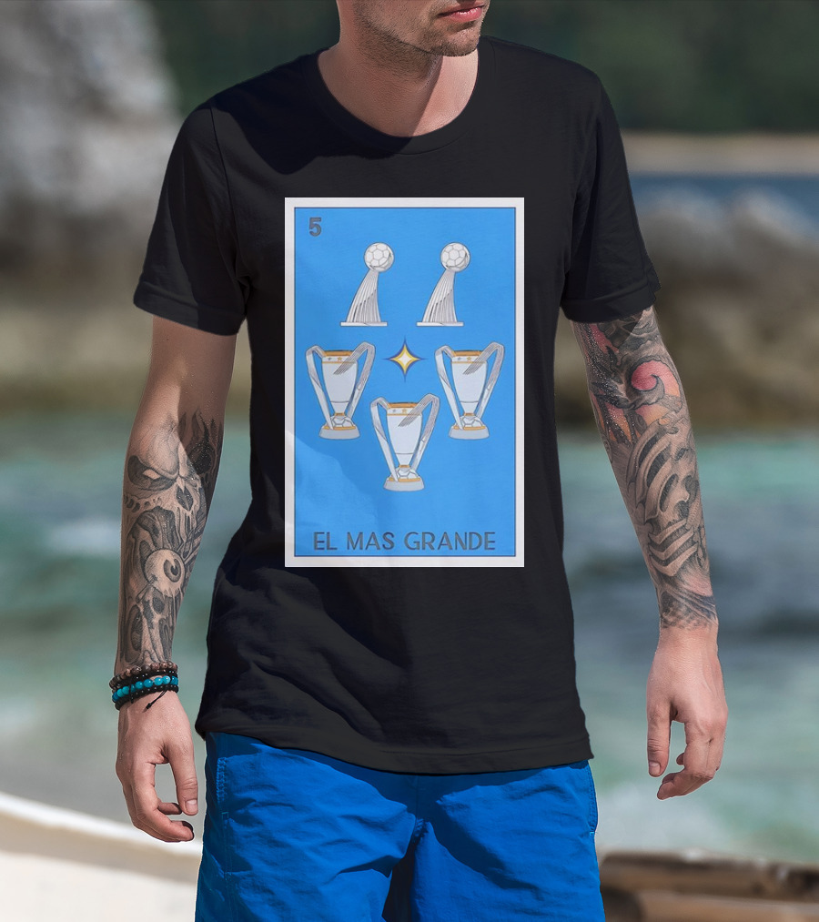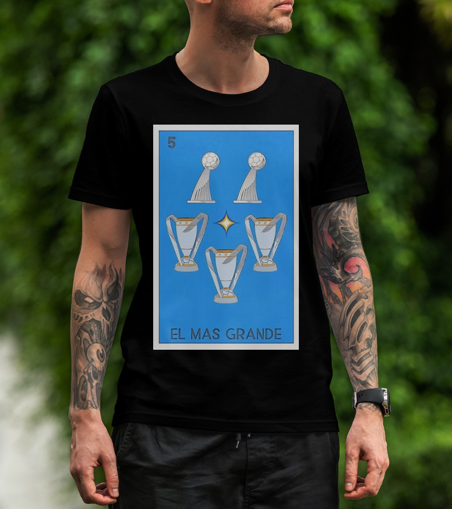 El Mas Grande Five Trophies Star Blue Background T-Shirt