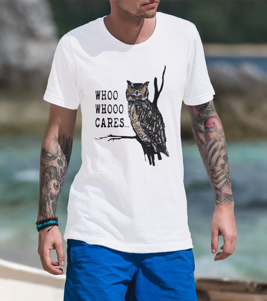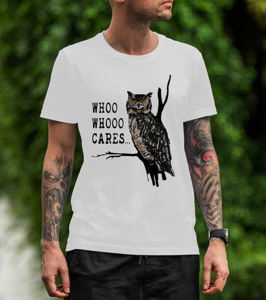 The Whoo Whooo Cares Owl T-shirt is designed for everyday wear and a consistent fit. Fabric is pre-shrunk ring-spun cotton with durable stitching. See the size chart below for exact measurements.