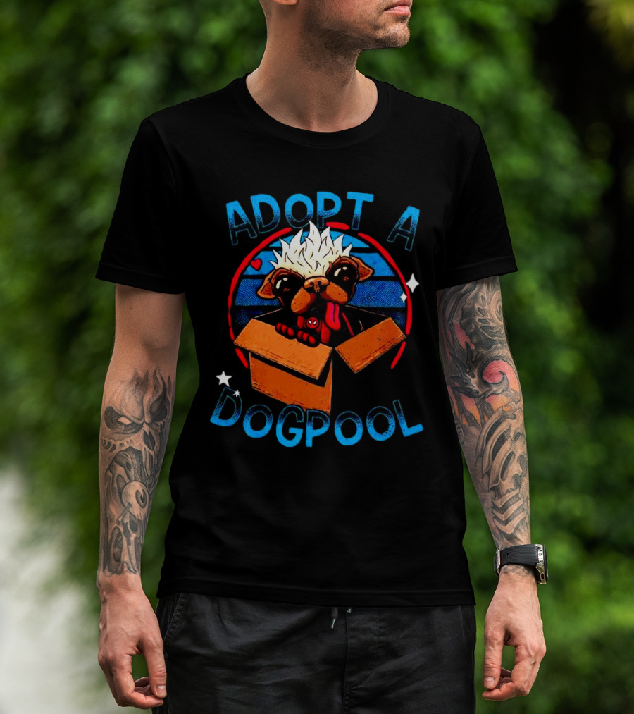 Adopt A Dogpool Cute Pug In Cardboard Box With Hearts And Stars T-Shirt