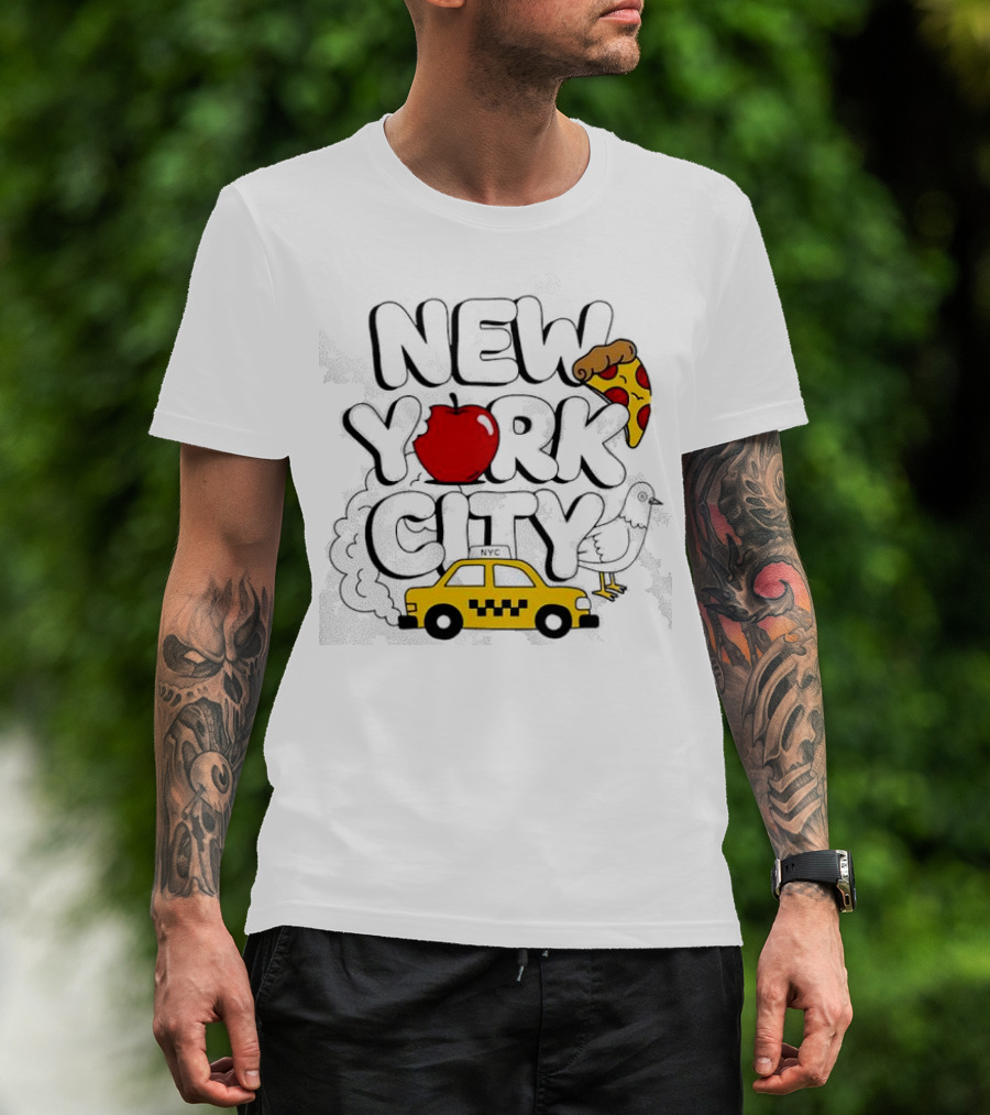 NEW YORK CITY Apple Pizza Taxi Pigeon T-Shirt