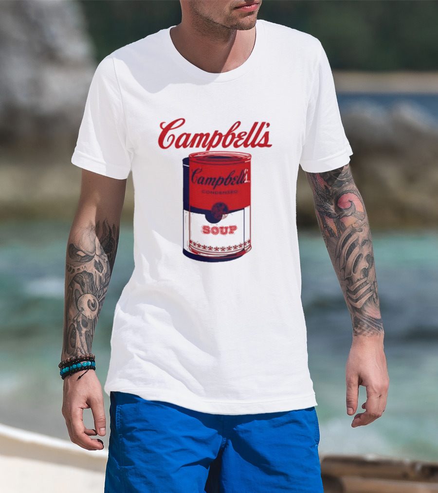 The Campbell’s Condensed Soup Can Red T-shirt is designed for everyday wear and a consistent fit. Fabric is pre-shrunk ring-spun cotton with durable stitching. See the size chart below for exact measurements.