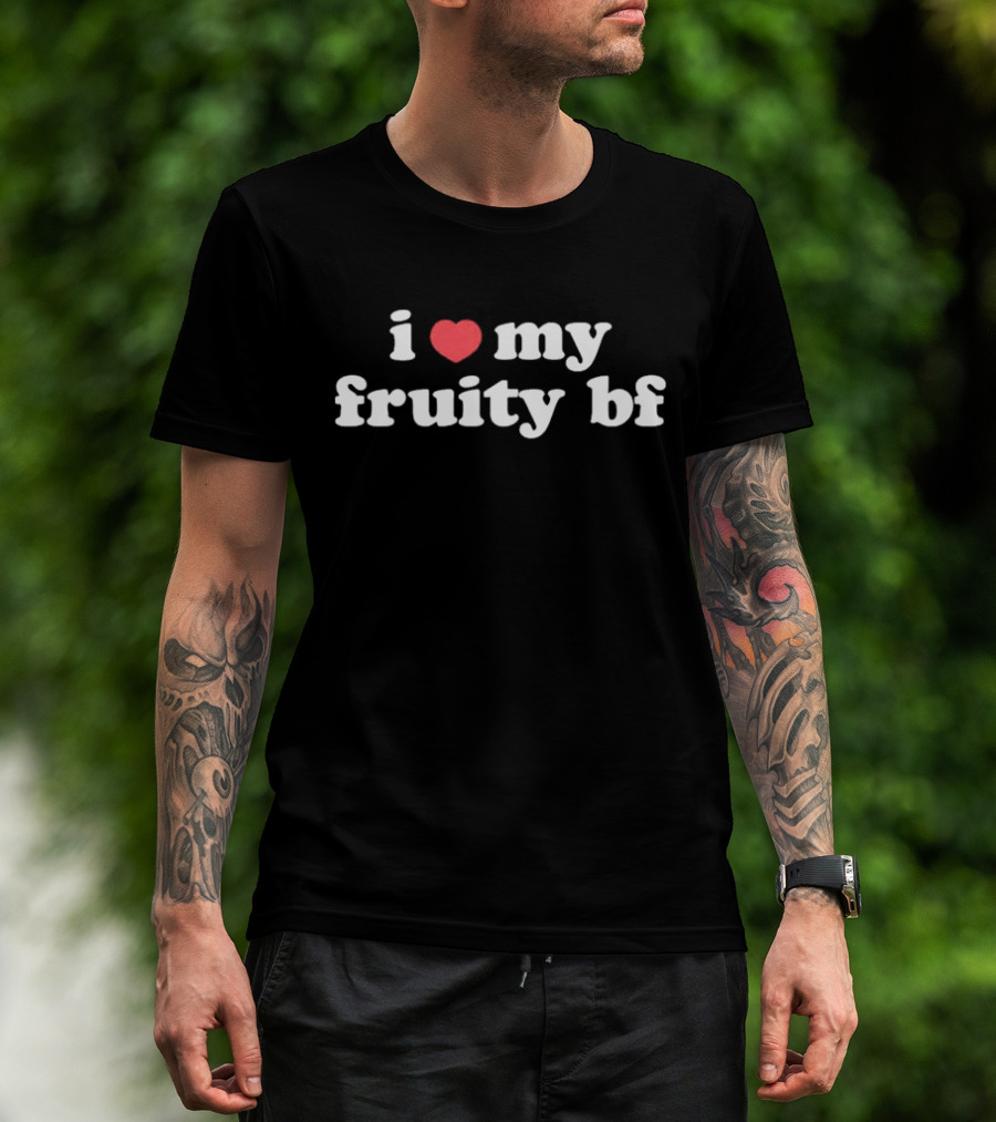 I Love My Fruity Bf Heart Text Bold White Font T-Shirt