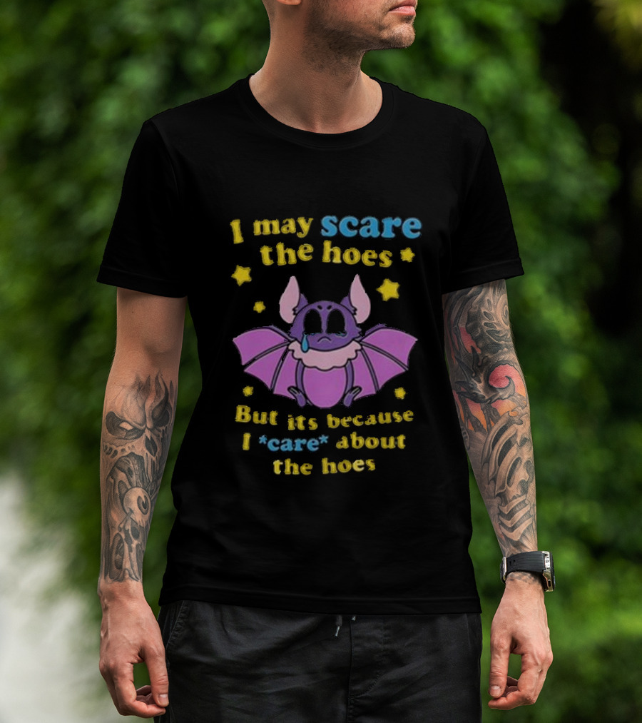 I May Scare The Hoes But It's Because I Care About The Hoes Cute Bat With Stars T-Shirt