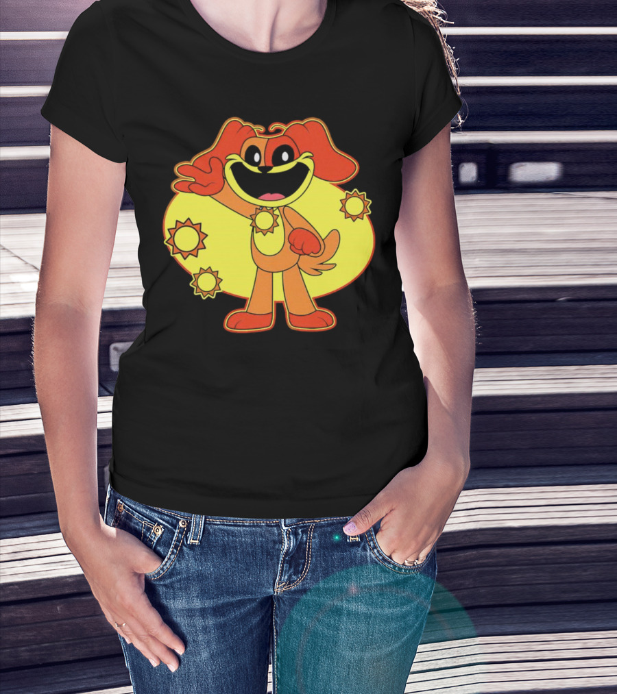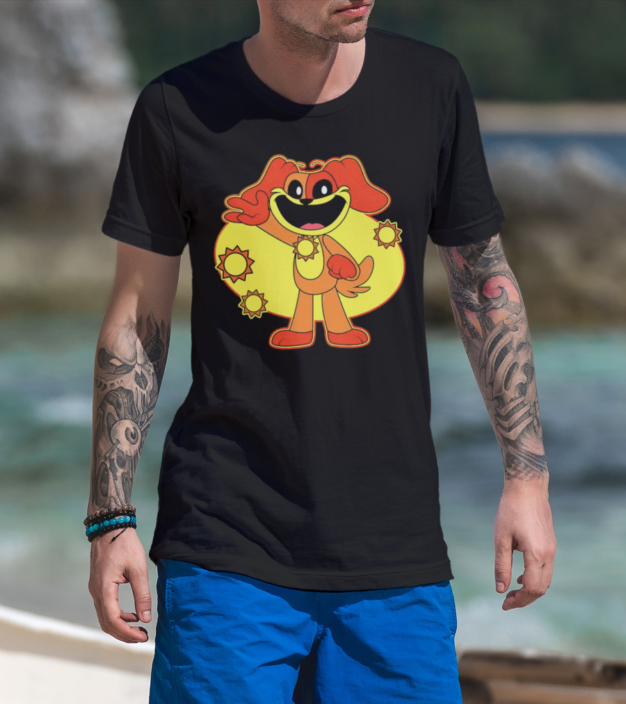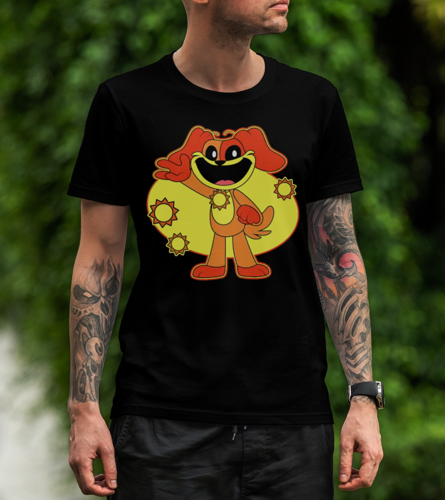 Dogday Smiling Critters Cheerful Cartoon Dog With Sun Icons T-Shirt