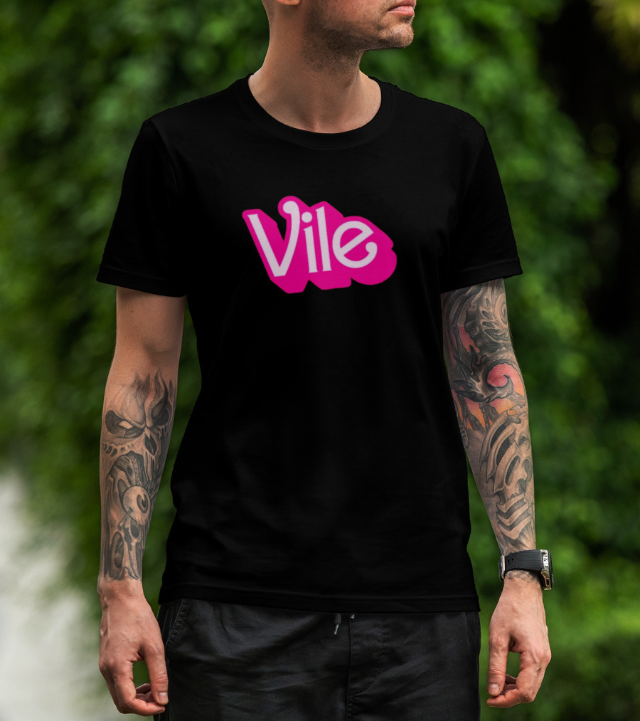The Vile Barbie Movies Vivid Hot Pink T-shirt is designed for everyday wear and a consistent fit. Fabric is pre-shrunk ring-spun cotton with durable stitching. See the size chart below for exact measurements.