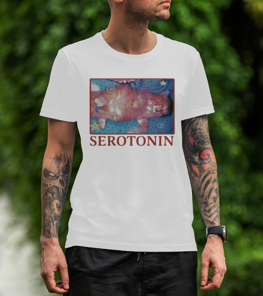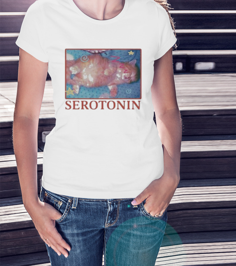 K45ink Serotonin Cat With Stars And Spirals T-Shirt