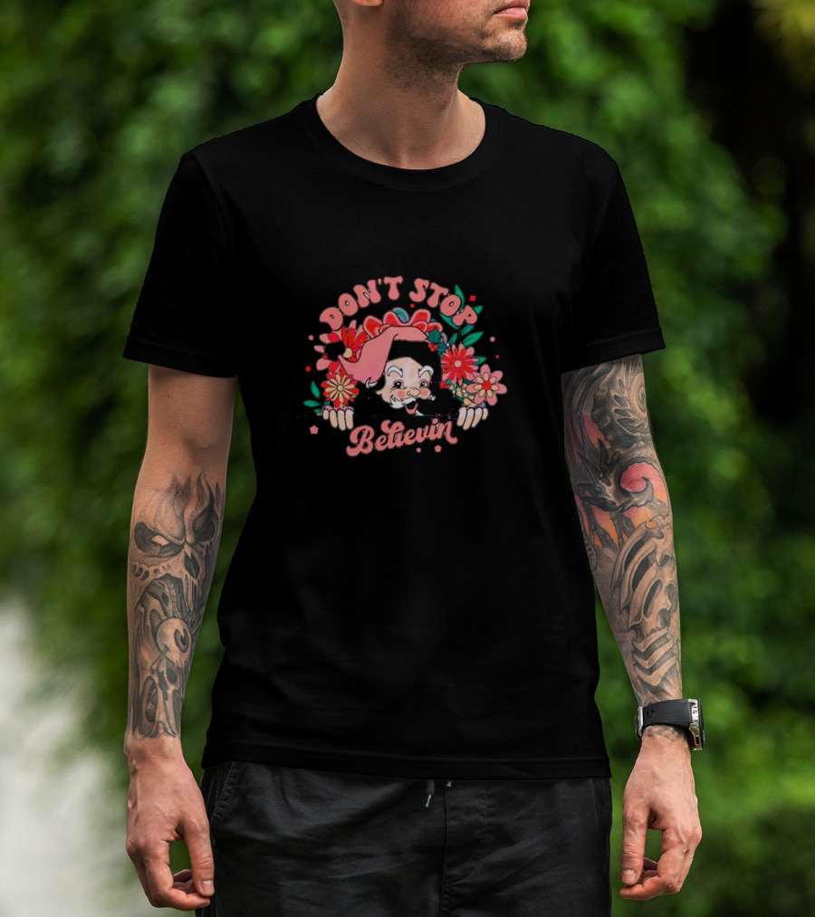 Don't Stop Believin Floral Santa Blossoms T-Shirt