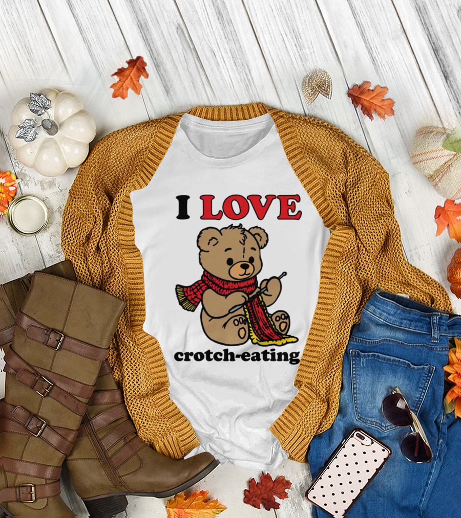 I Love Crotch-Eating Bear Wearing Scarf And Knitting T-Shirt