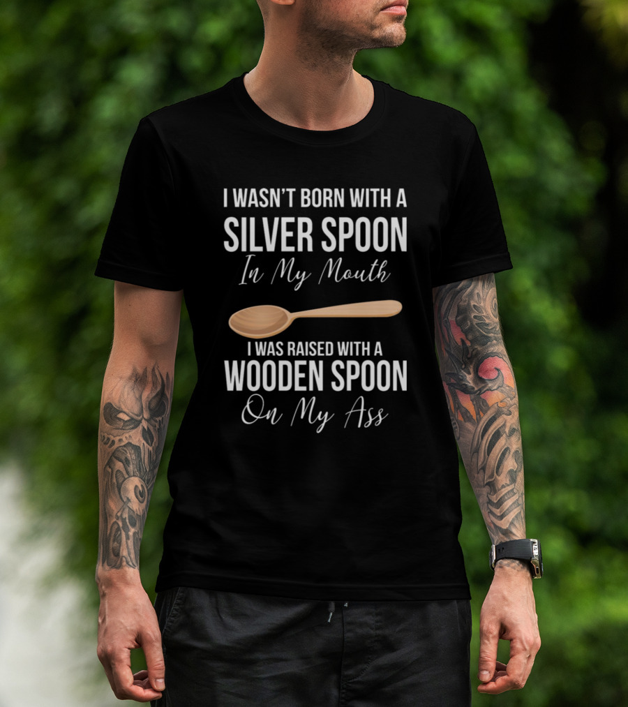 I Wasn’t Born With A Silver Spoon In My Mouth I Was Raised With A Wooden Spoon On My Ass T-Shirt