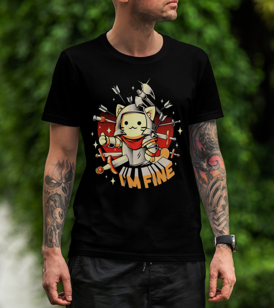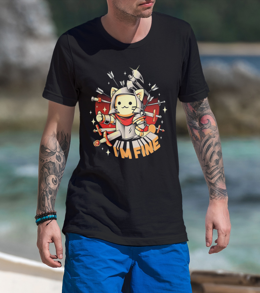 I'm Fine Soldier Cat With Armor And Weapons T-Shirt
