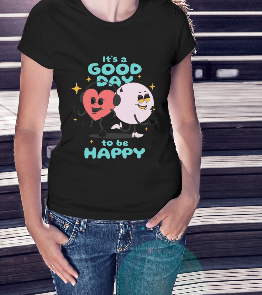 IT'S A GOOD DAY TO BE HAPPY Heart And Smiley Face Strolling With Headphones T-Shirt