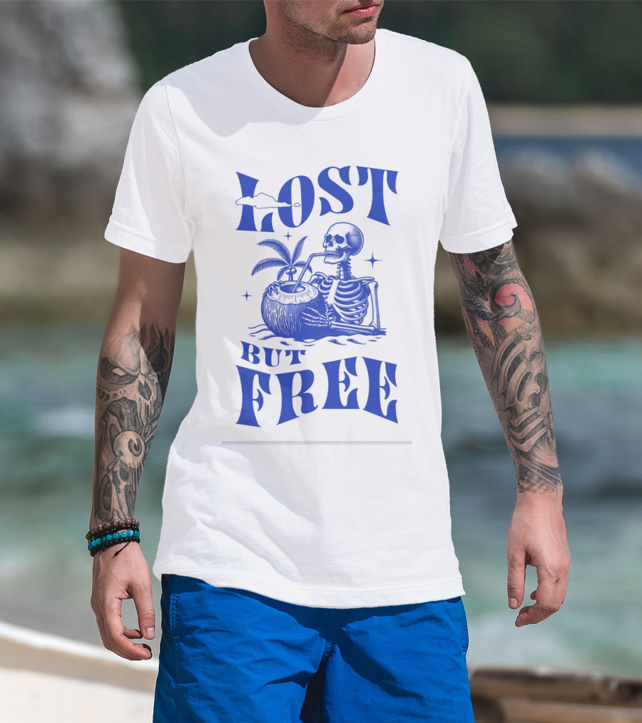 Lost But Free Skeleton With Coconut Drink Beach Vintage T-Shirt